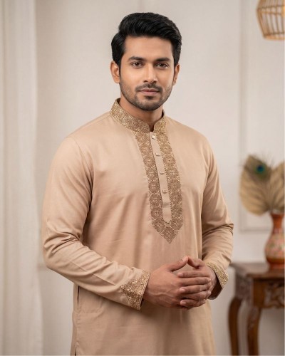 রাজকীয় সাজে গোল্ডেন বেইজ এমব্রয়ডারি পা...