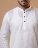 সাদা প্রিমিয়াম টিস্যু কটন পাঞ্জাবি - গোলাপ ফুলের চিকনকারি কাজ, স্ন্যাপ বাটন ডিজাইন (PP3005)
