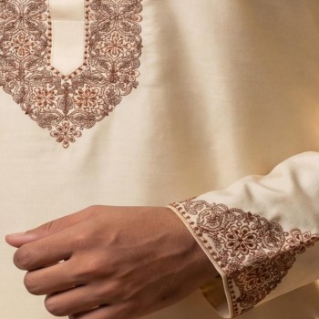 রাজকীয় সাজে গোল্ডেন বেইজ এমব্রয়ডারি পা...